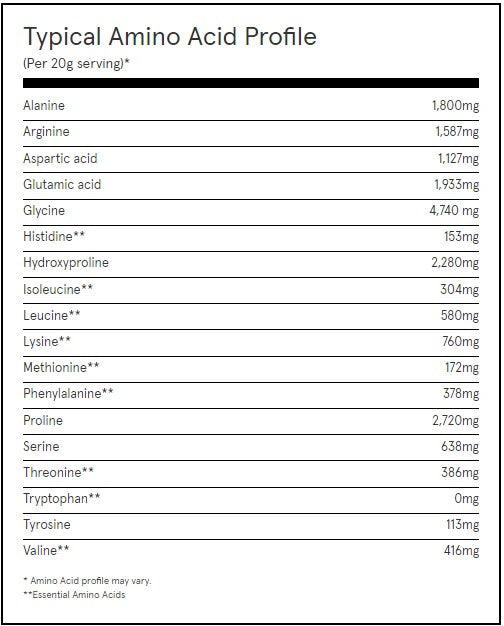 Structural tissue in the body like joints, bones and ligaments depends on the amino acids found in collagen for strength and flexibility.†