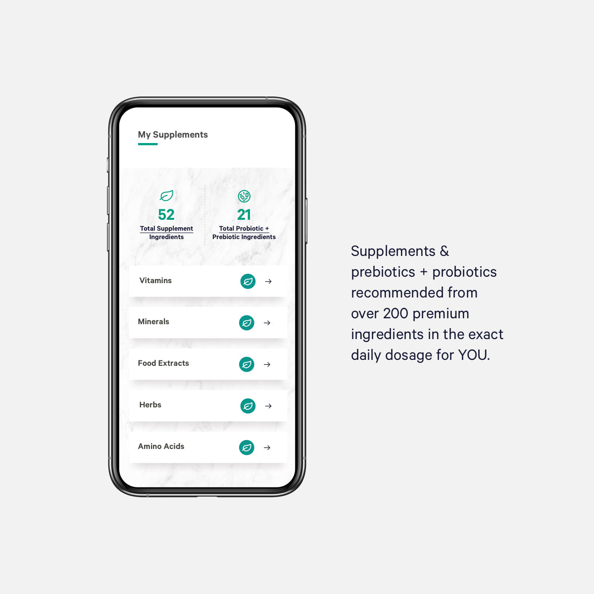 Supplement and probiotic recommendations selected from over 200 ingredients in your precise dosage needs.